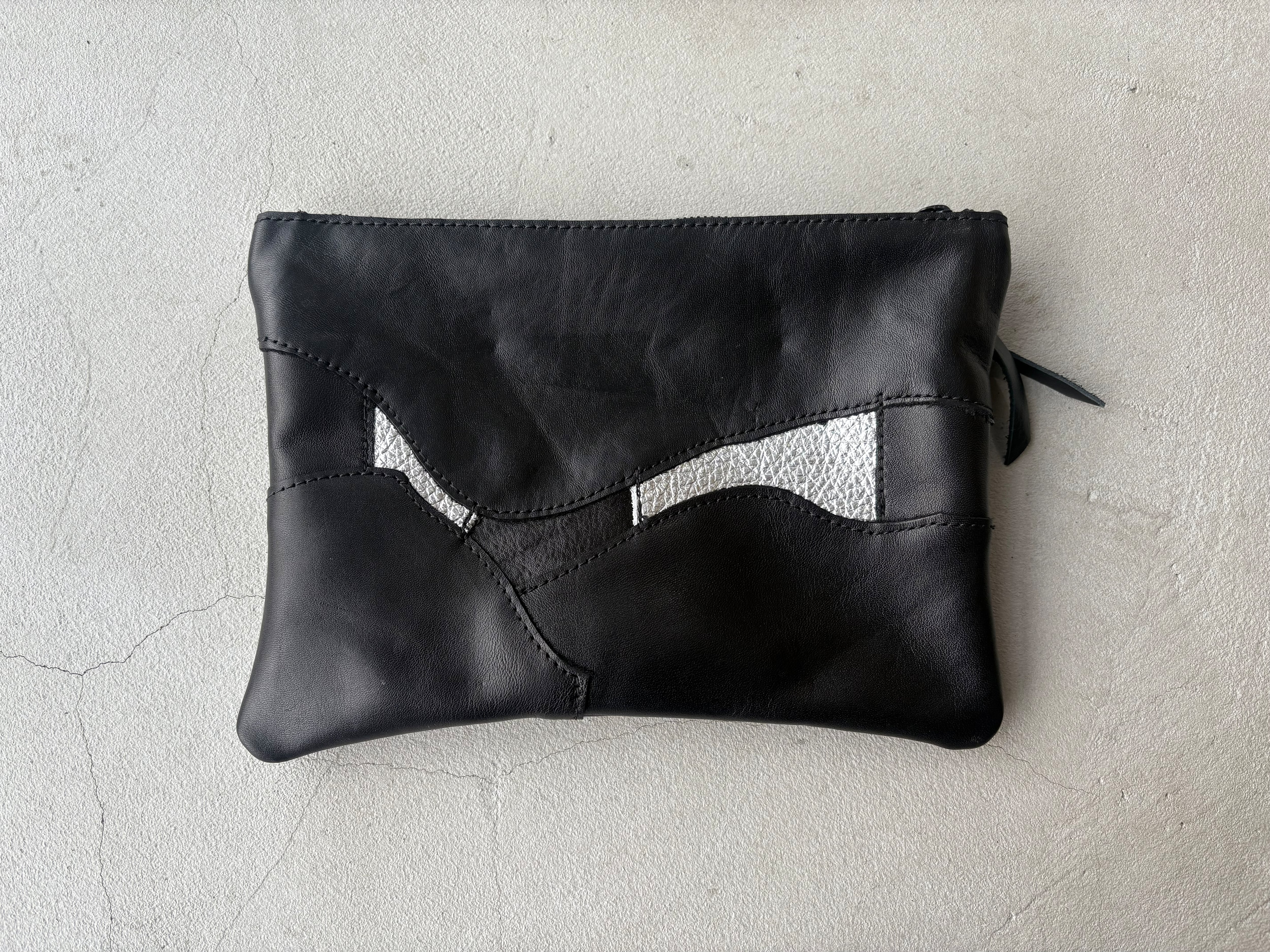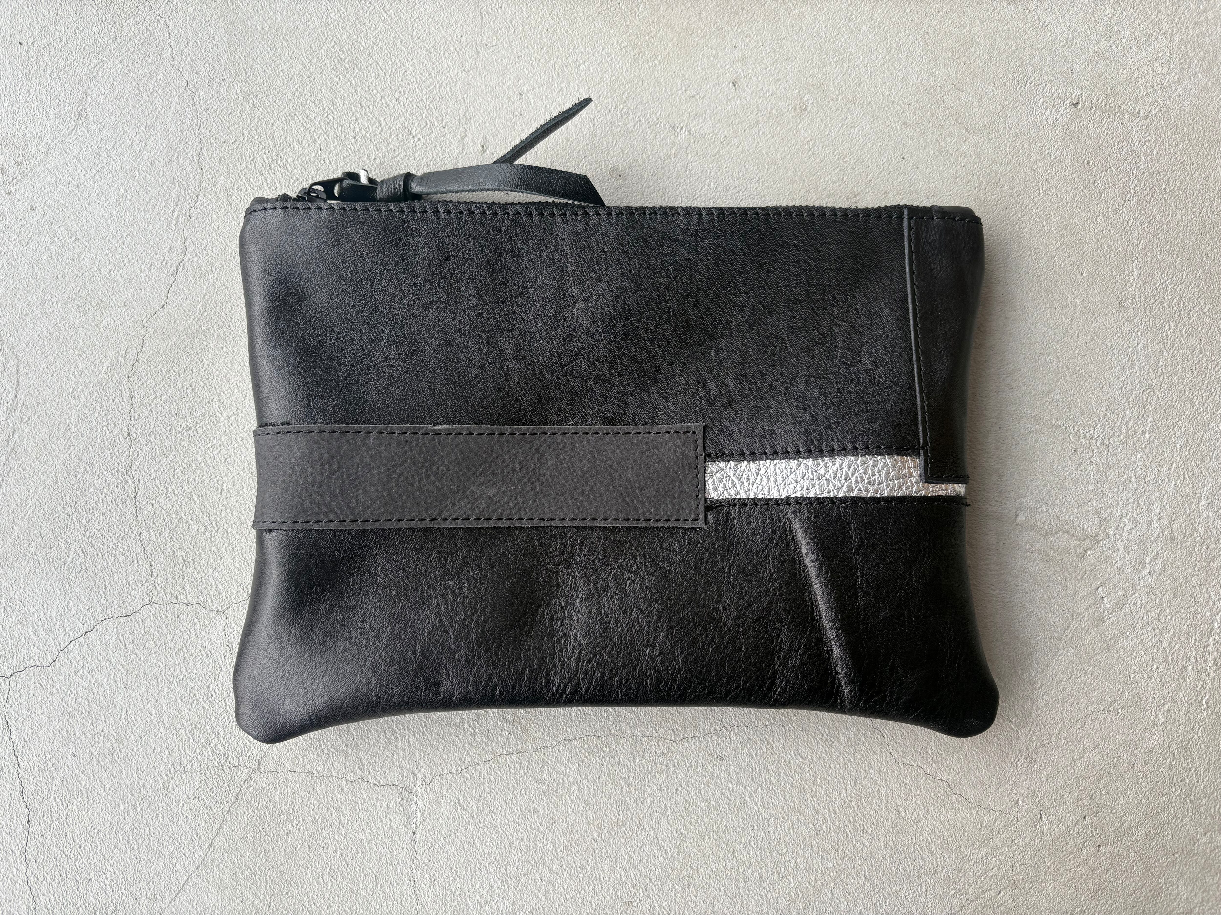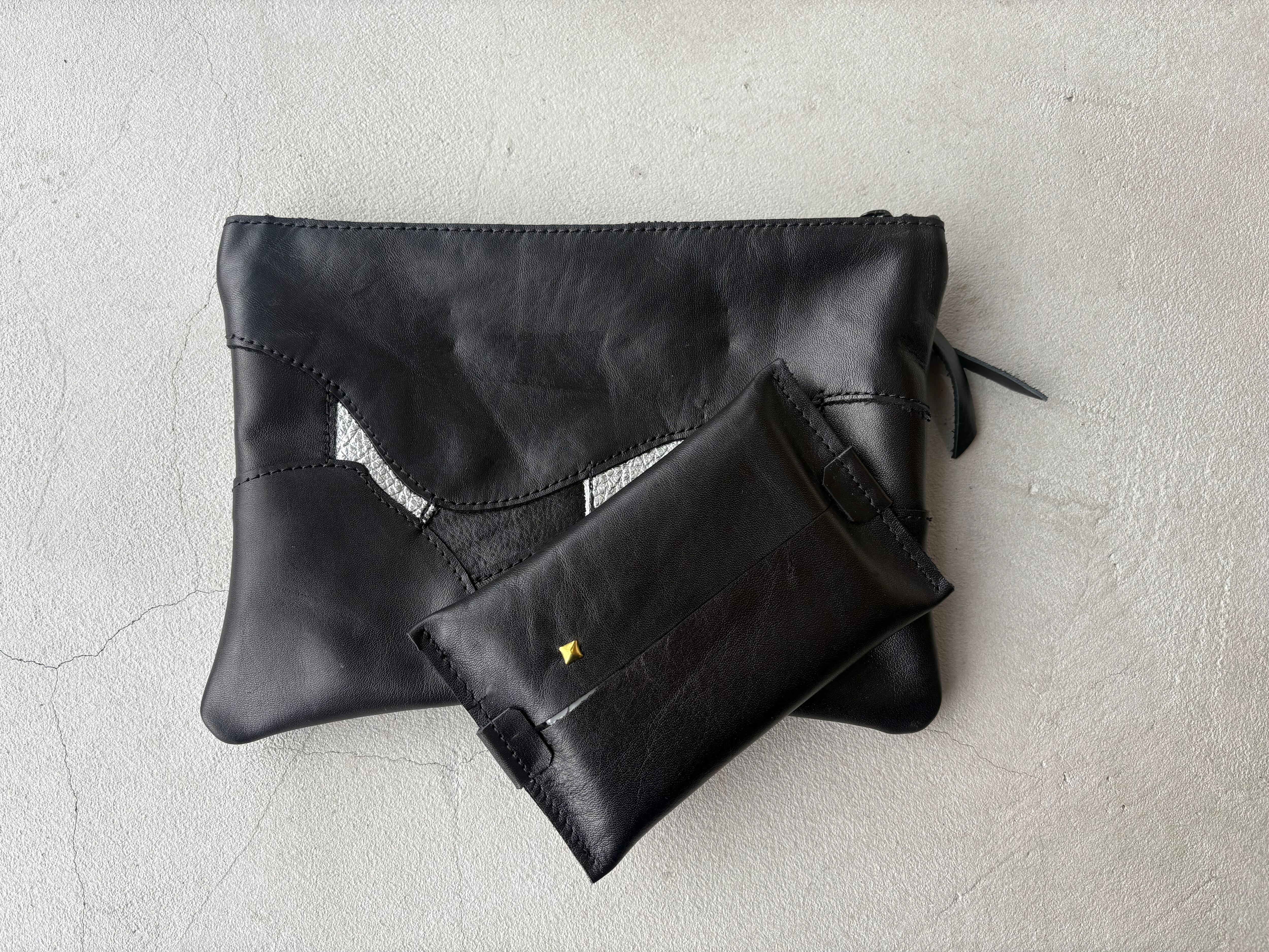 柔らかいブラックのレザーを繋ぎ合わせて仕上げました。