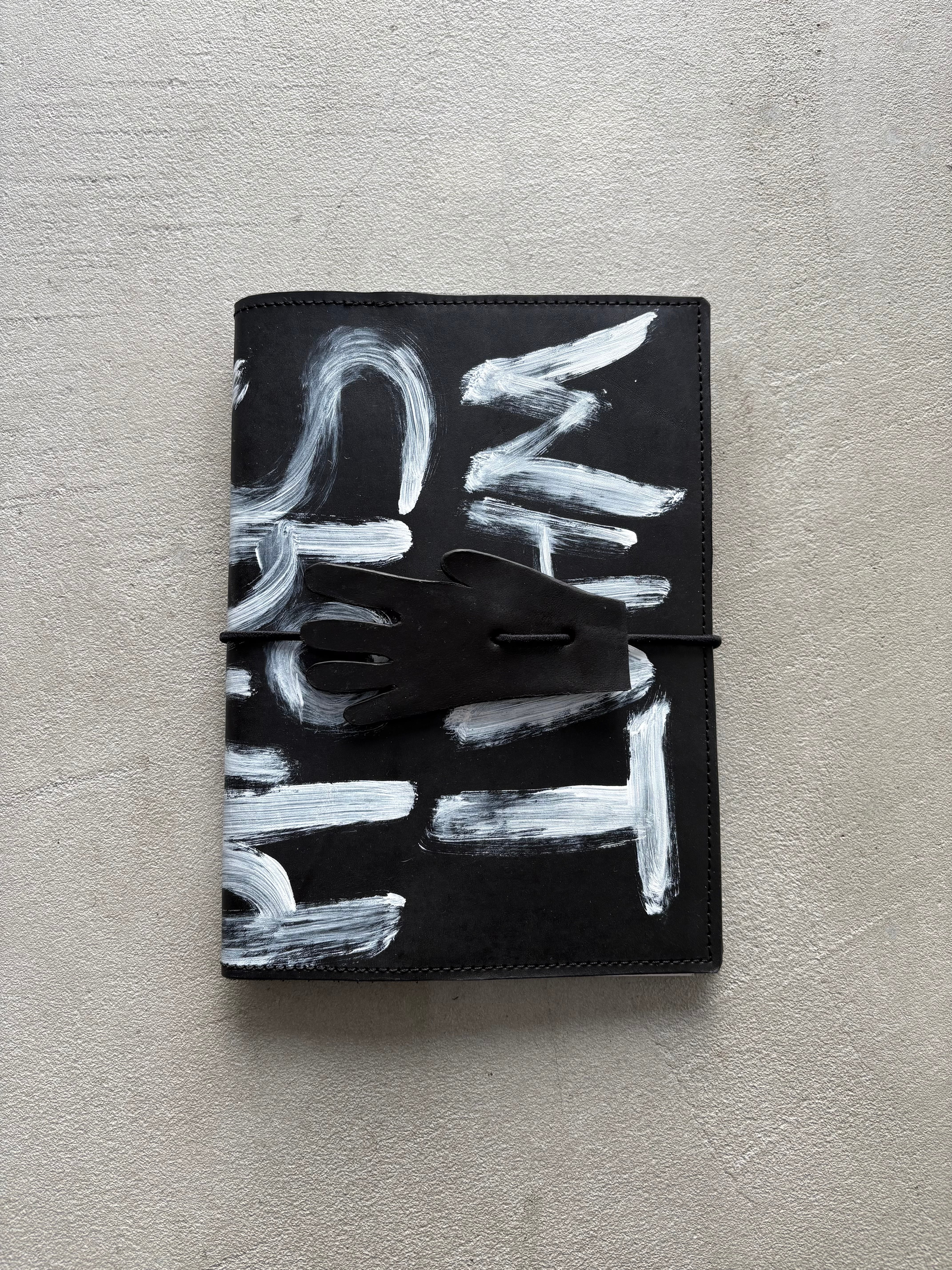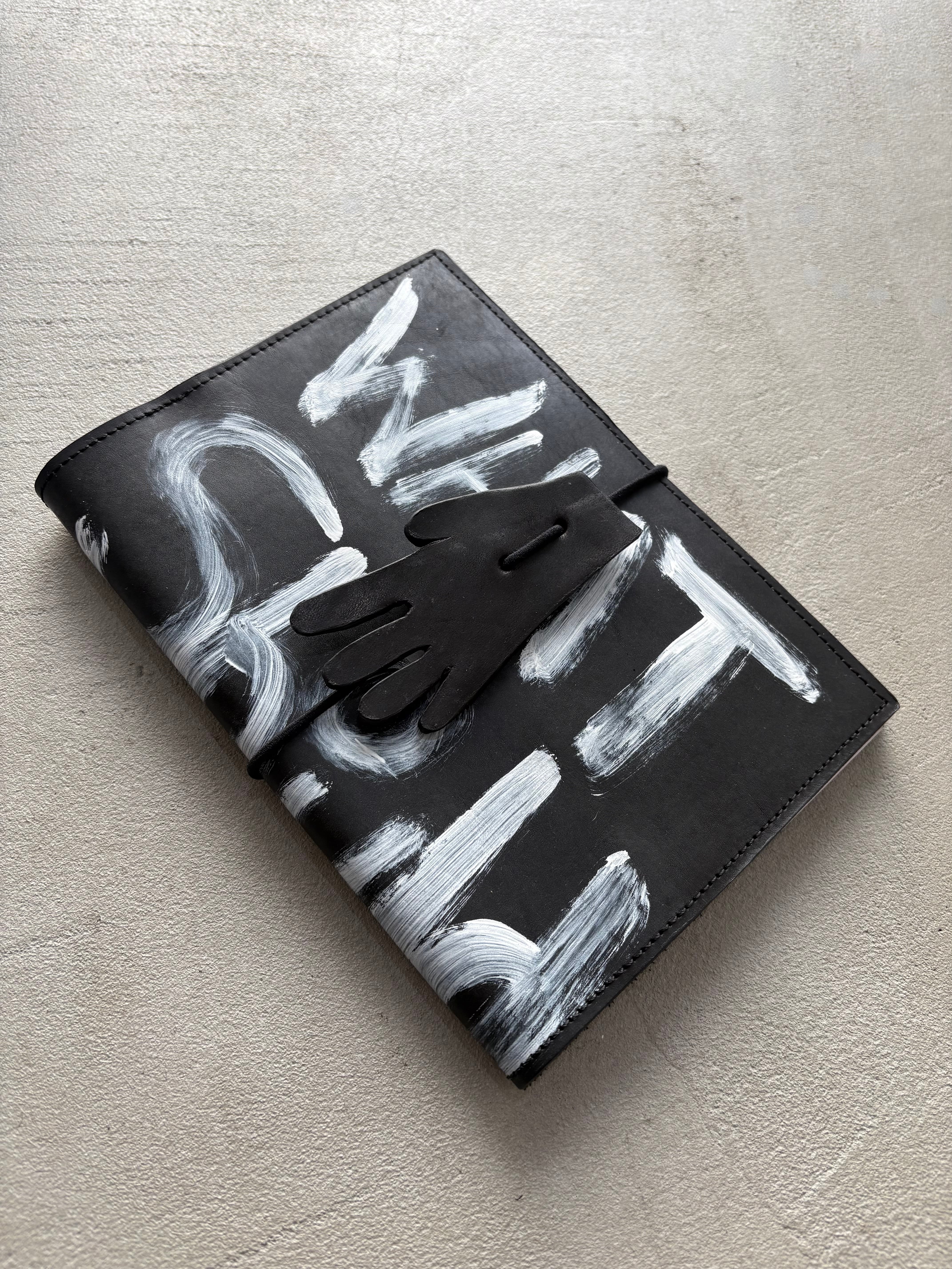 マットな質感の丈夫で柔らかいレザーにペイントを施した手帳カバー。